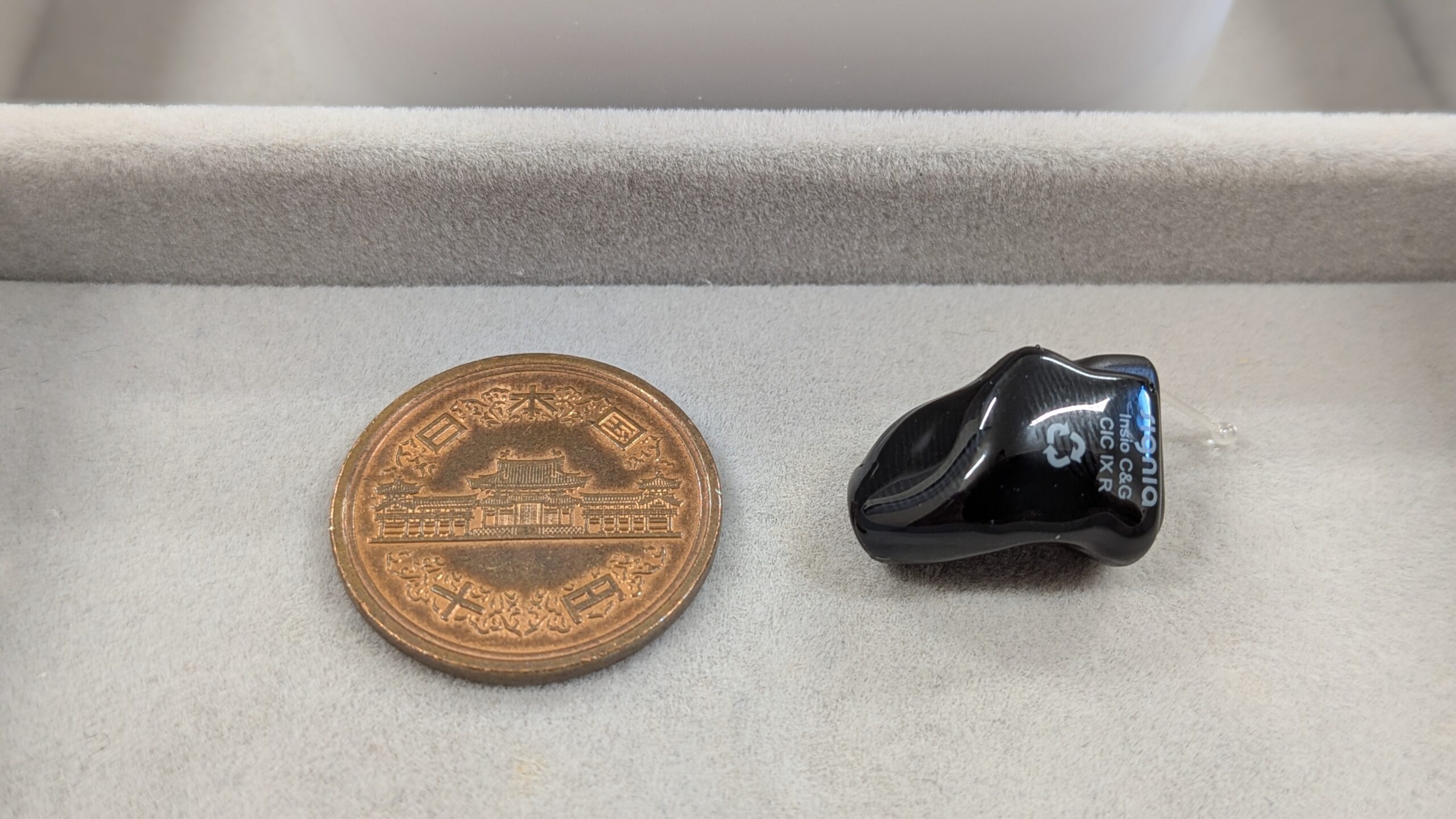 耳の中にすっぽり入ってしまうCICタイプで、目立たない耳あな型補聴器をご希望される方にはこのサイズ感はとても良いのではないかと思います。